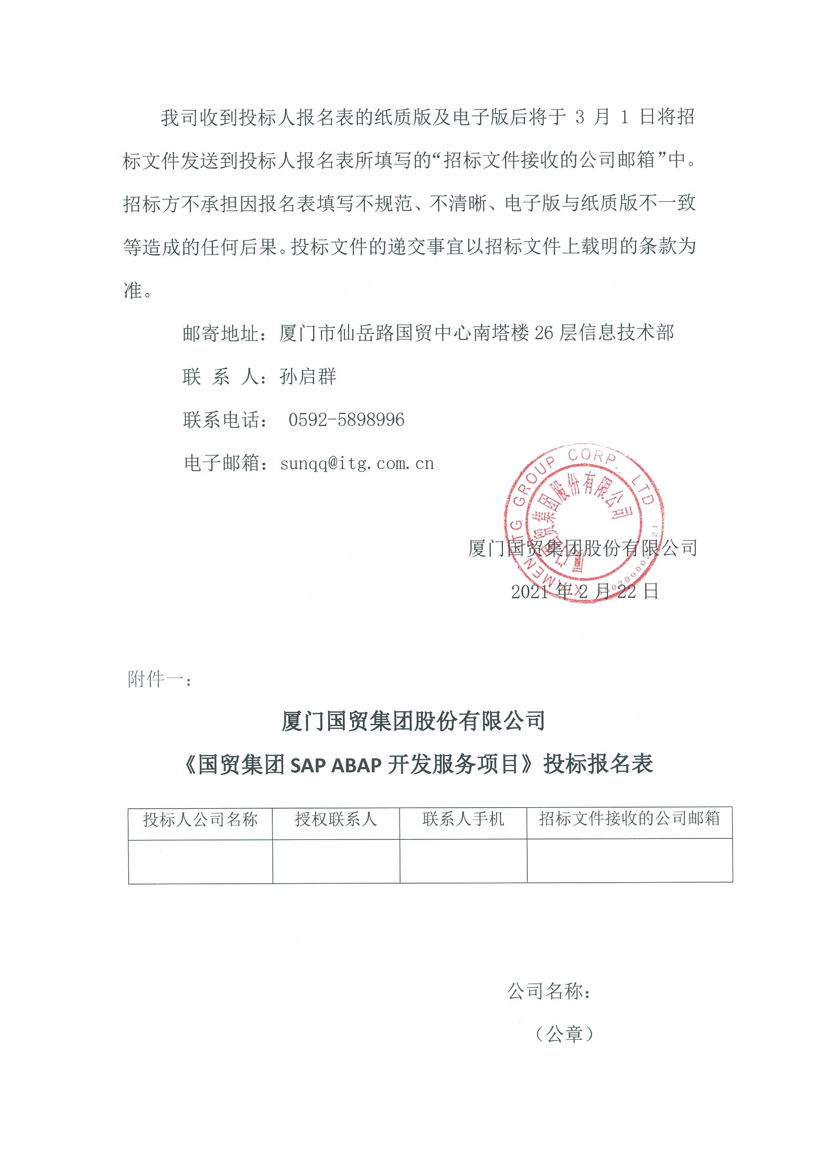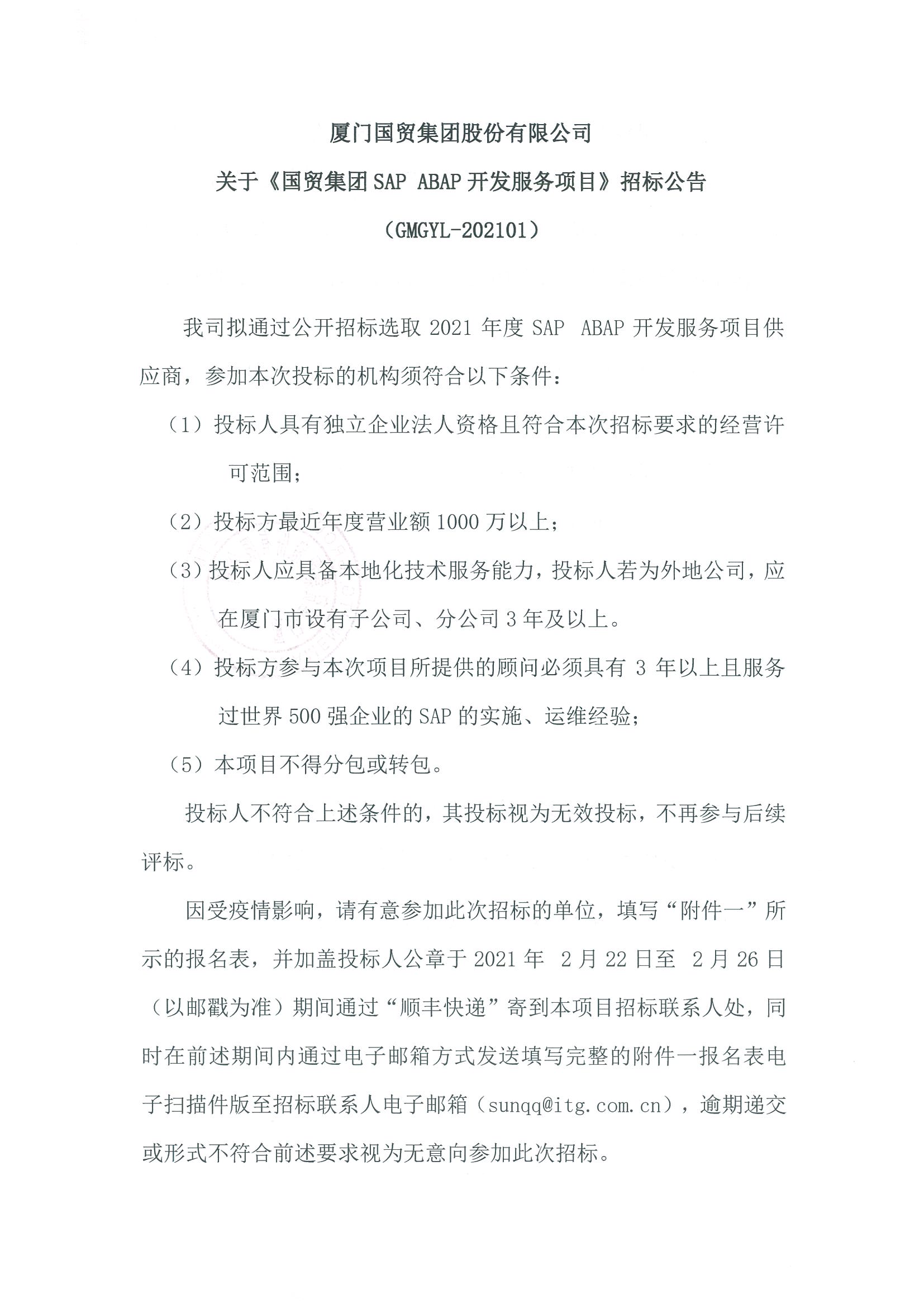 关于《国贸集团SAP ABAP开发服务项目》招标公告