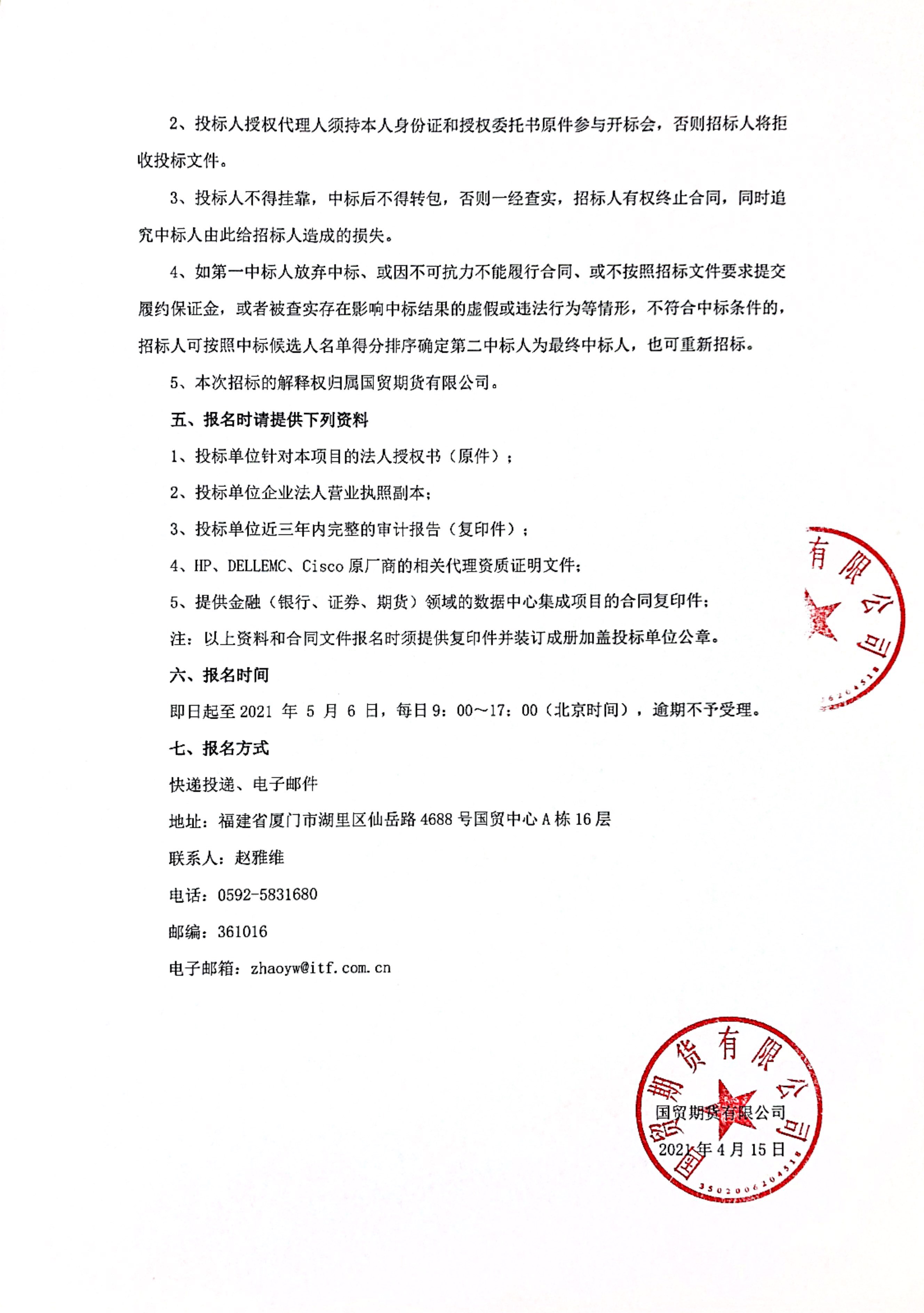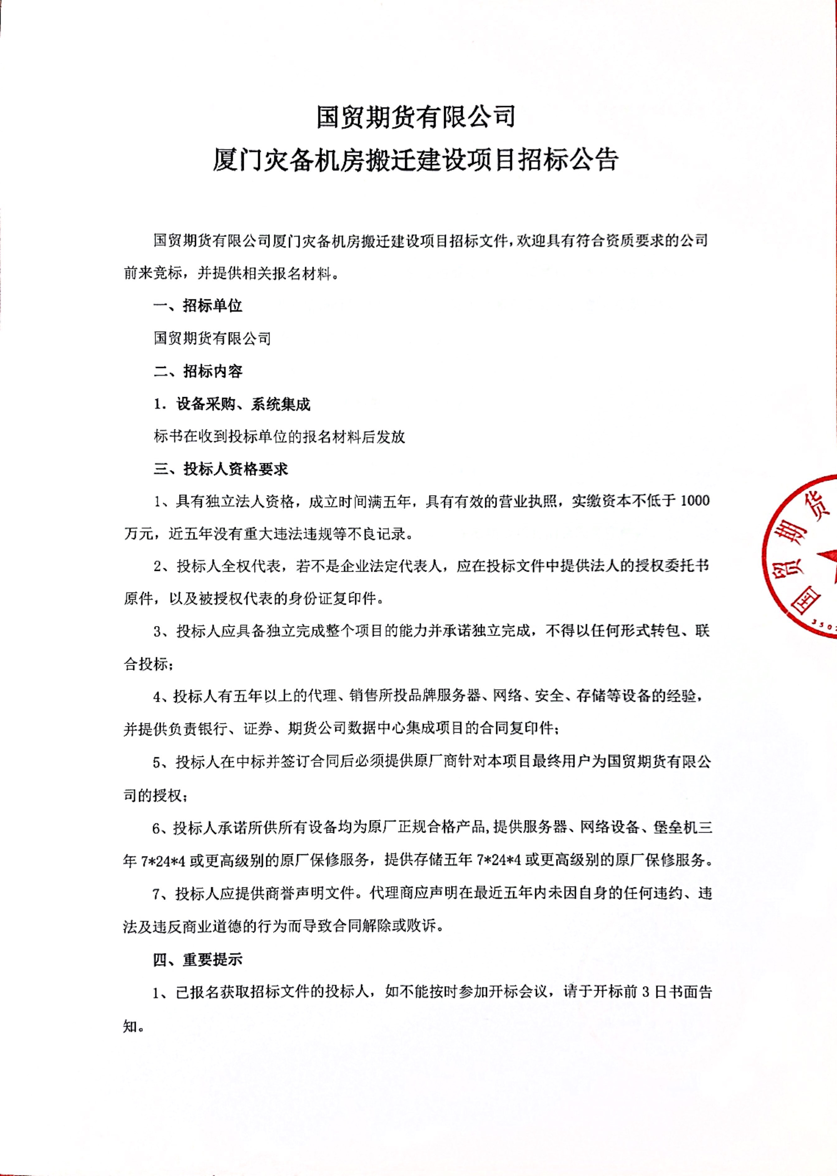 【国贸期货】厦门灾备机房搬迁建设项目招标公告