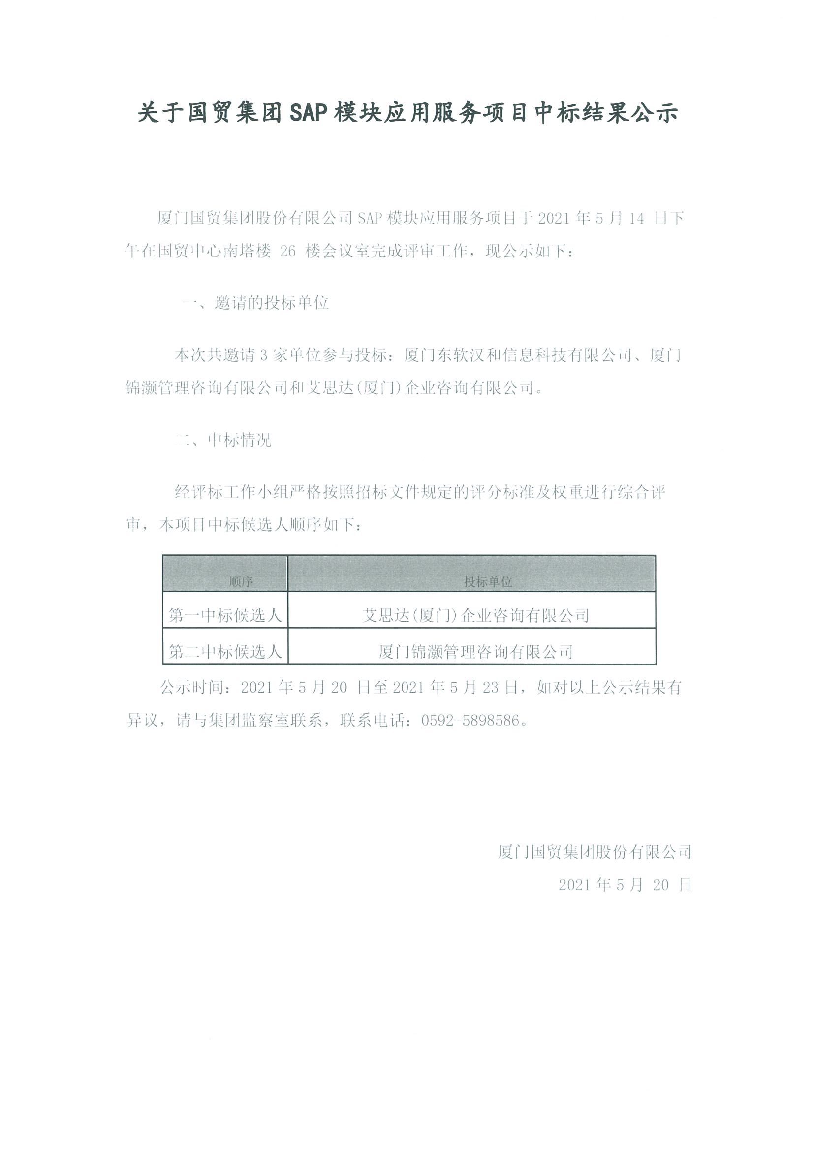 关于色色啦 集团SAP模块应用服务项目中标结果公示