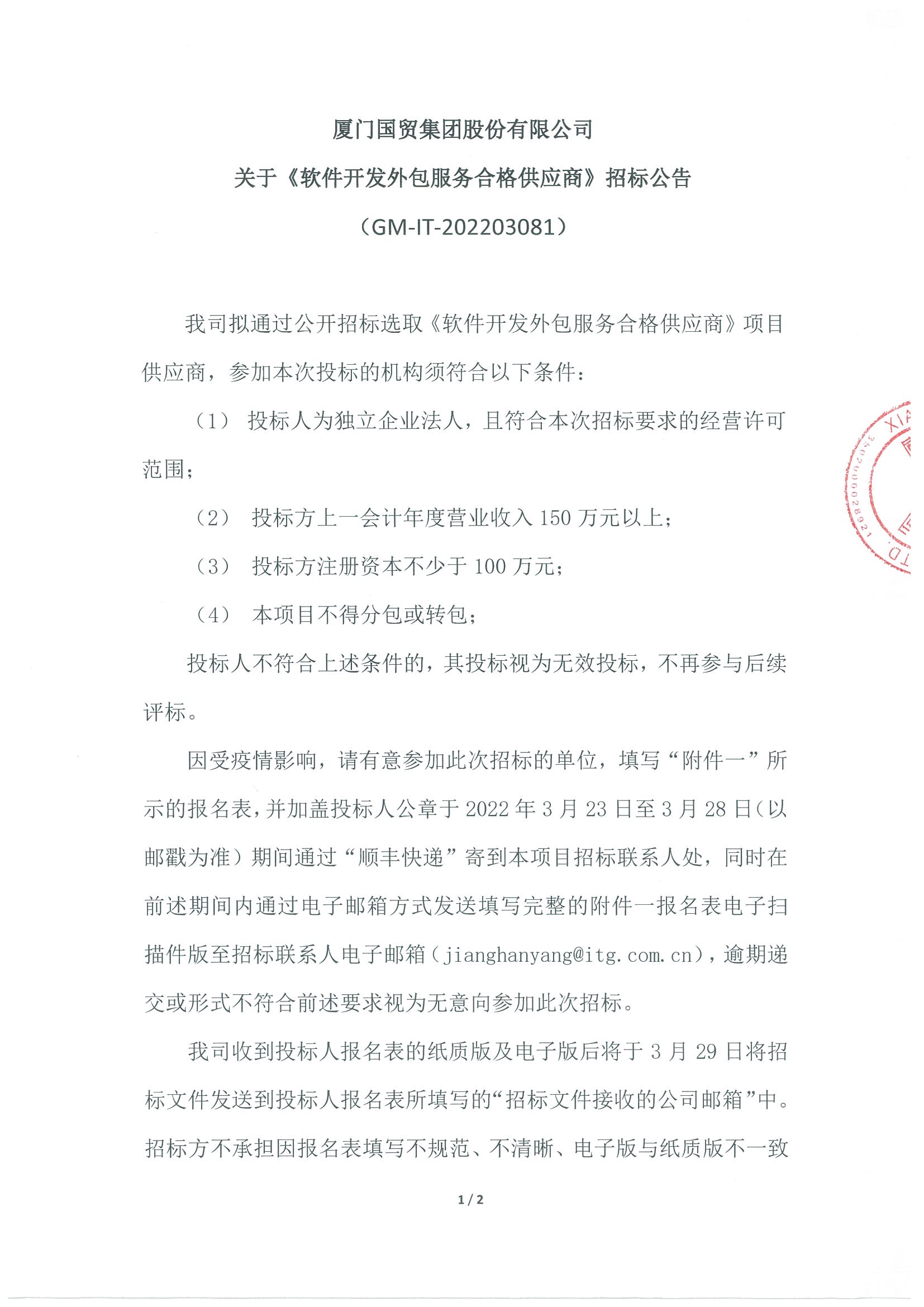色色啦 关于《软件开发外包服务合格供应商》的招标公告