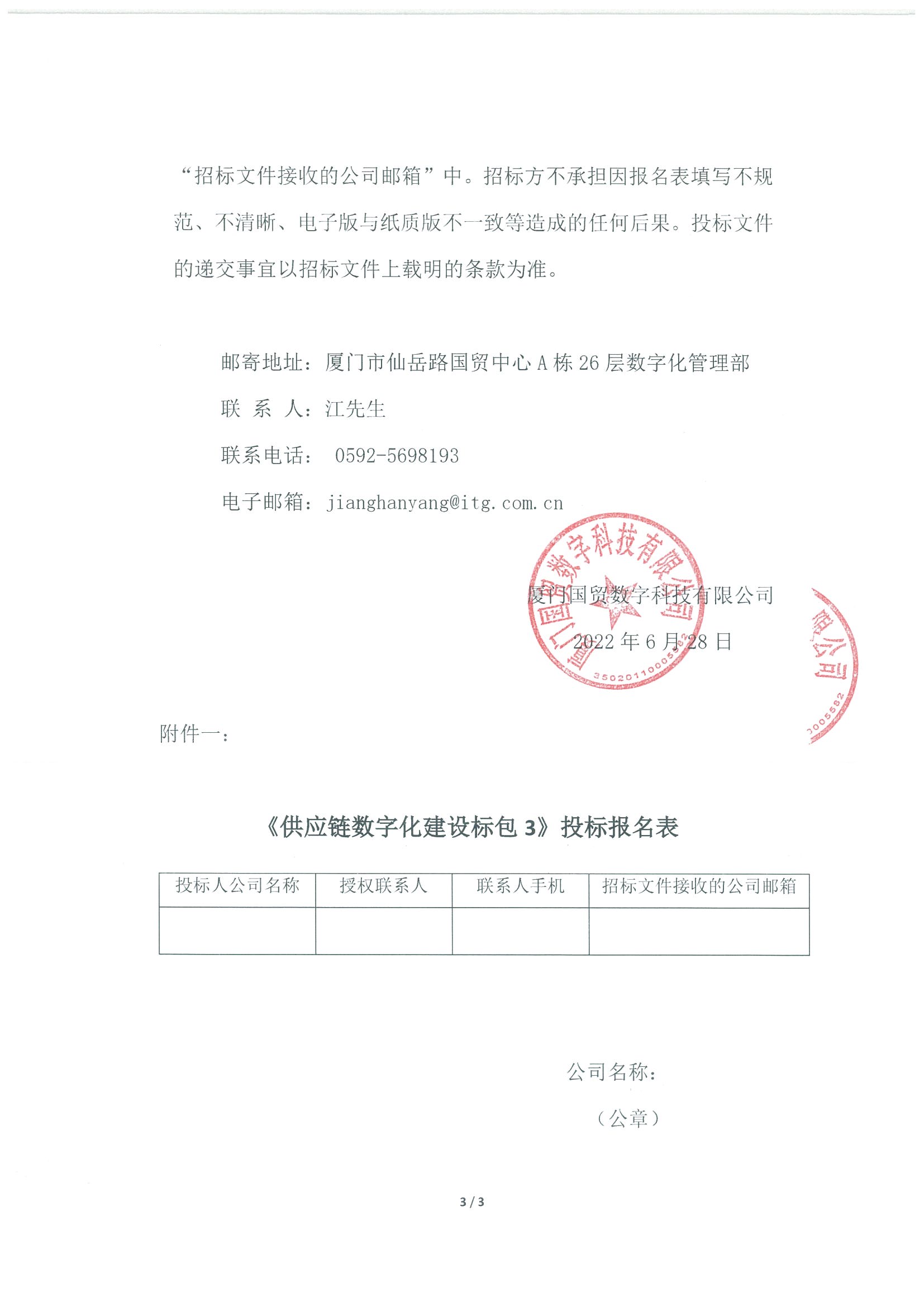 色色啦 数字科技有限公司关于《供应链数字化建设标包3》的招标公告