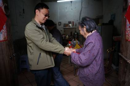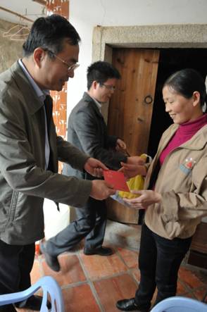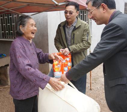 湖柑村党支部书记邵海堤在村委会向大家介绍了湖柑村及其重点困难户的情况。党员代表认真询问了村财收入、小学教育、农村医疗保障等的问题。随后党支部代表分别走访看望了14户困难户,给每个困难户送去了慰问金以及棉被及年货。这14户人家中有患心脏病的单亲母亲,丧失劳动能力的残疾人,有失去双亲的孤儿,还有长期受病魔折磨、家境一贫如洗的特困户。每到一处,大家无不为这些困难户的贫困家境所动心动容。困难户也为公司党员的爱心所感动,再三表示对国贸的感谢之情。